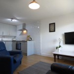 • 2 x Large open plan living room/kitchen both with a 40″ flat screen TV, leather sofas, and a brand new kitchen which includes a large fridge freezer, ceramic hob and dishwasher etc.